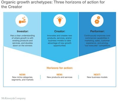 They talked about three different approaches. The first was an investor type. This is looking at new categories, segments and markets to add value too. Next is the creator which looks at new products and services. The last is the performer that looks at new business models.